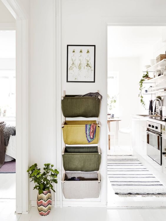 В нашем топе обязательно нужно упомянуть корзины и коробки. Они могут как складываться в шкаф, так и крепиться прямо к стене.