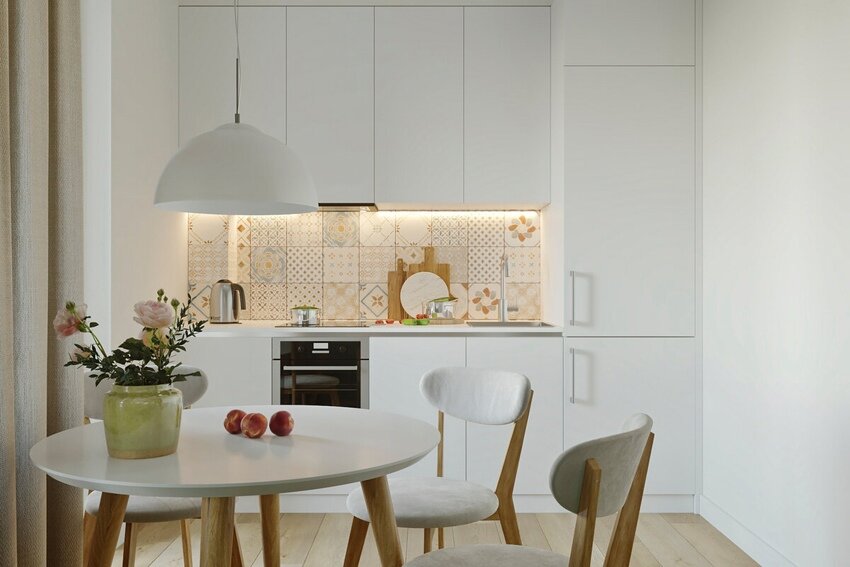 В свою очередь, белая мебель сливается с белыми стенами и это буквально «растворяет» границы пространства, делая его еще просторнее.