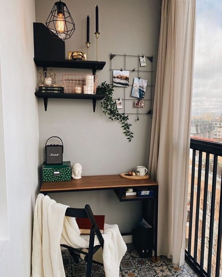 Рабочее место обустроили на лоджии.