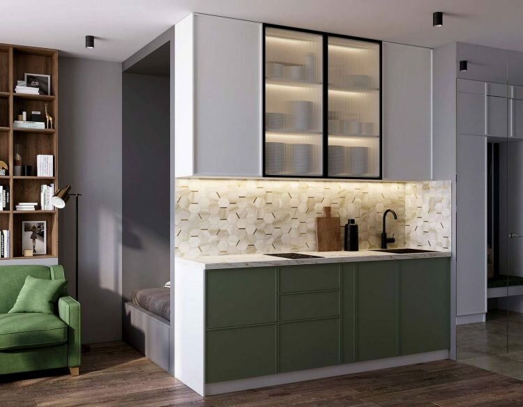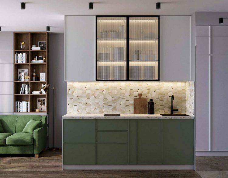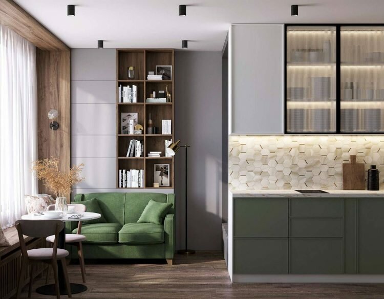 - Изысканные детали и золотые акценты. Элегантная кухня-гостиная в молочно-кремовых тонах