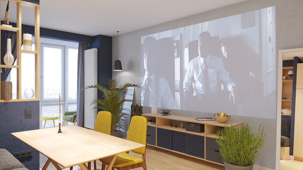Вместо дивана хозяин выбрал обычный стол и стул, а заодно также высказался за объединение зон гостиной, обеденной и кухонной для экономии места.