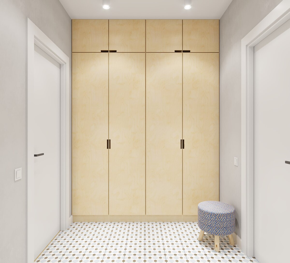 В прихожей есть встроенные шкафы для увеличения места для хранения.