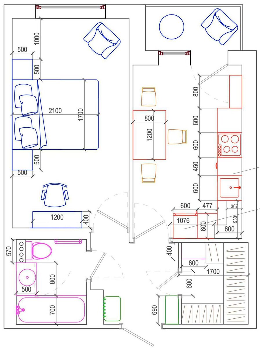 Сегодня рассмотрим небольшую квартиру площадью 39 кв.м. в которой дизайнер Анастасия Заркуа довольно смело использовала цветовые акценты.