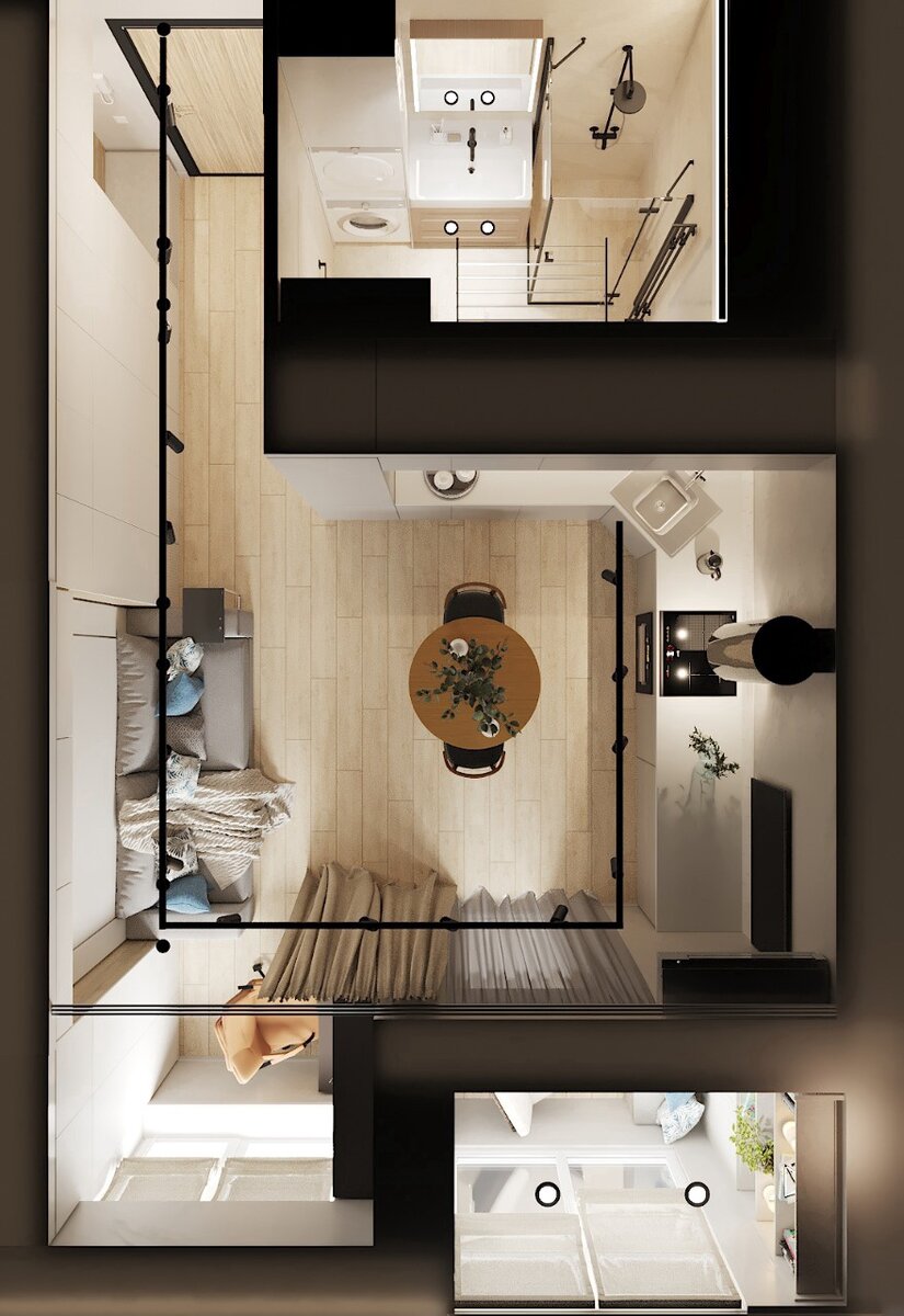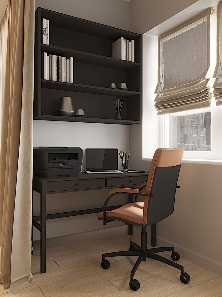 Чтобы сделать интерьер более выразительны и подчеркнуть его детали выбраны черные акценты.