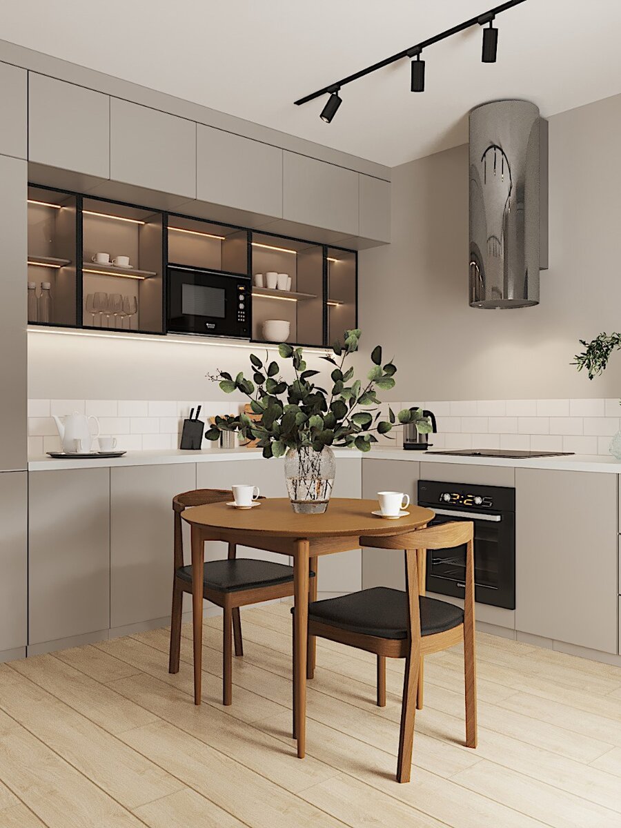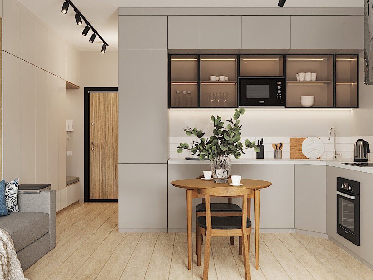 В отделке своей новой квартиры они отдали предпочтение своим любимым оттенкам — светло-серого и натурального дерева.