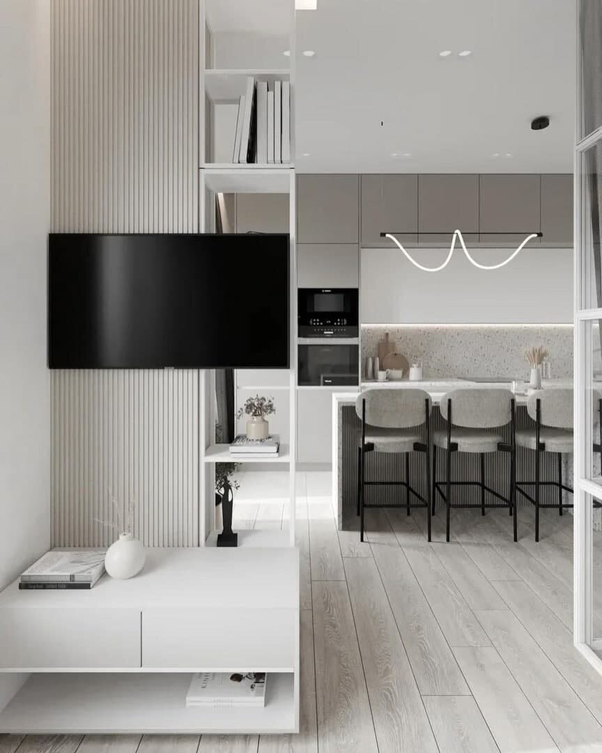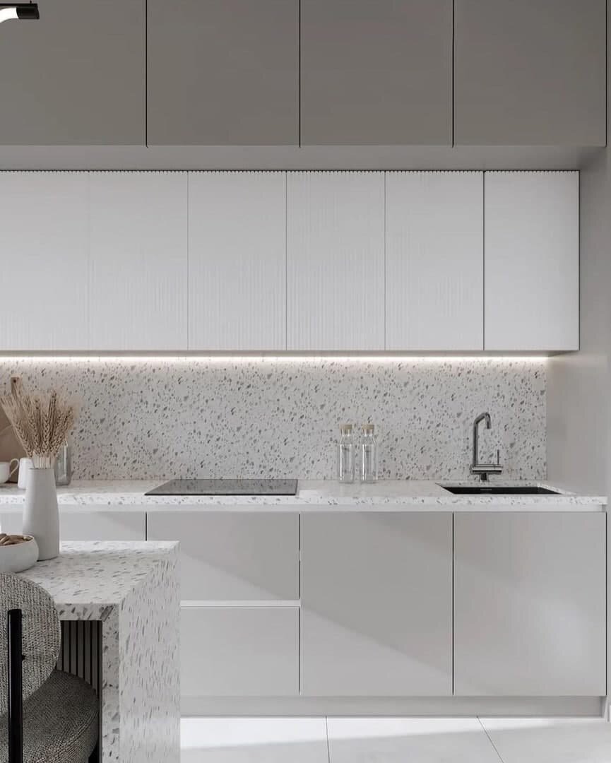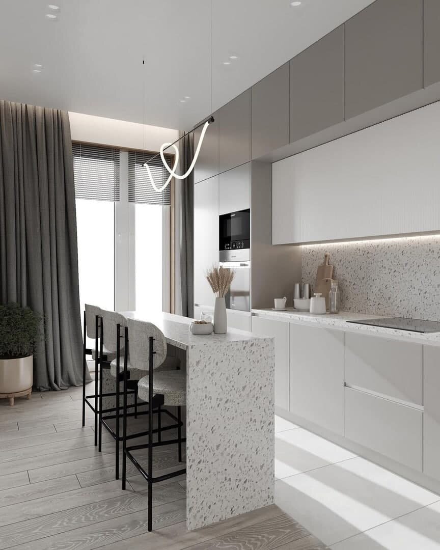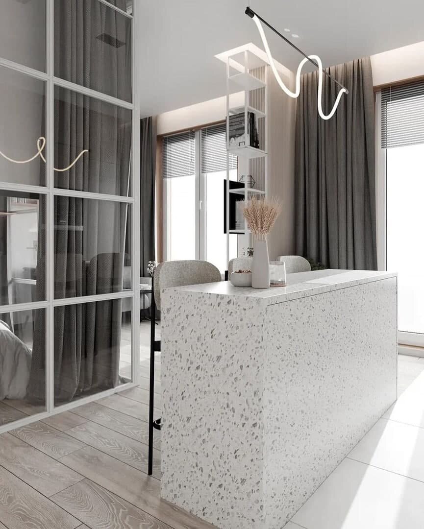 Терраццо отлично дополняет всю композицию этого стильного интерьера.