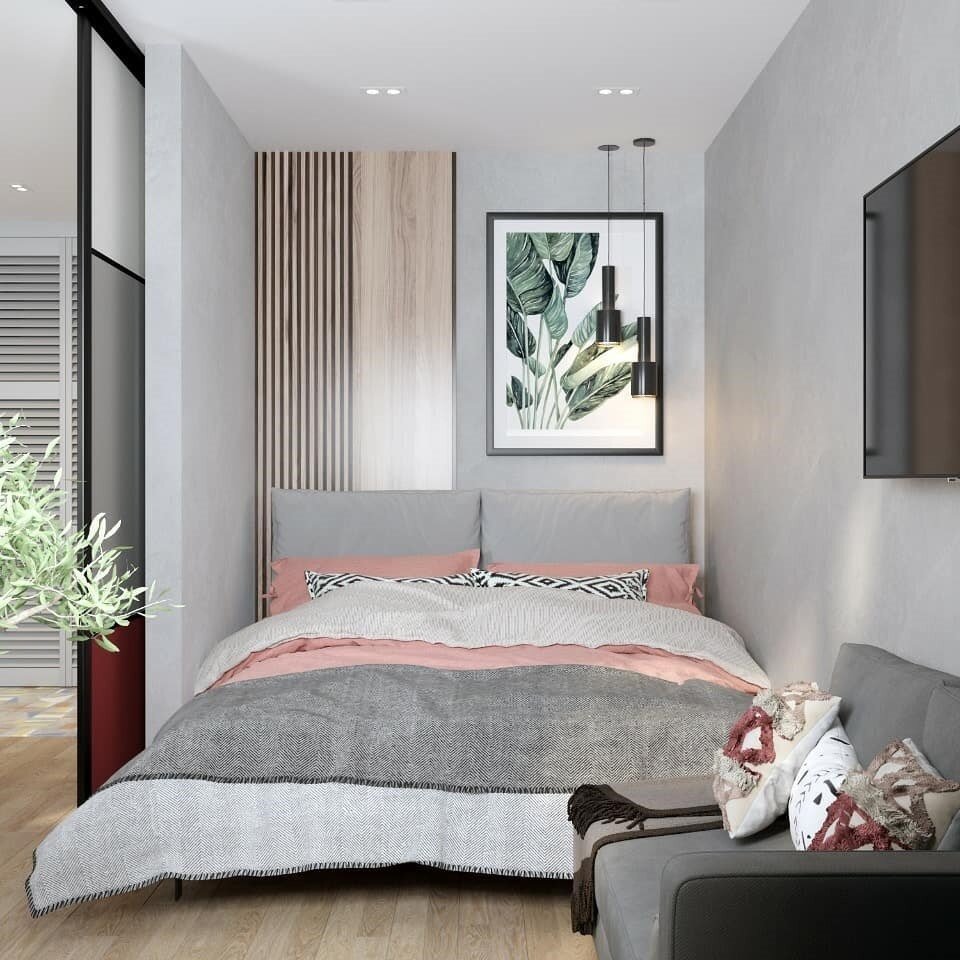 Спальню отделили от неё легкой раздвижной перегородкой.