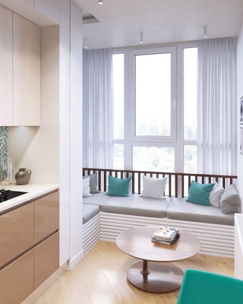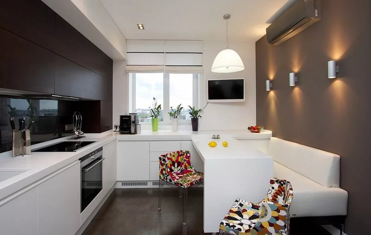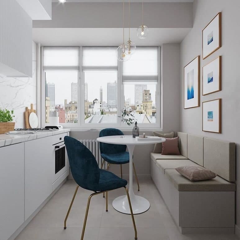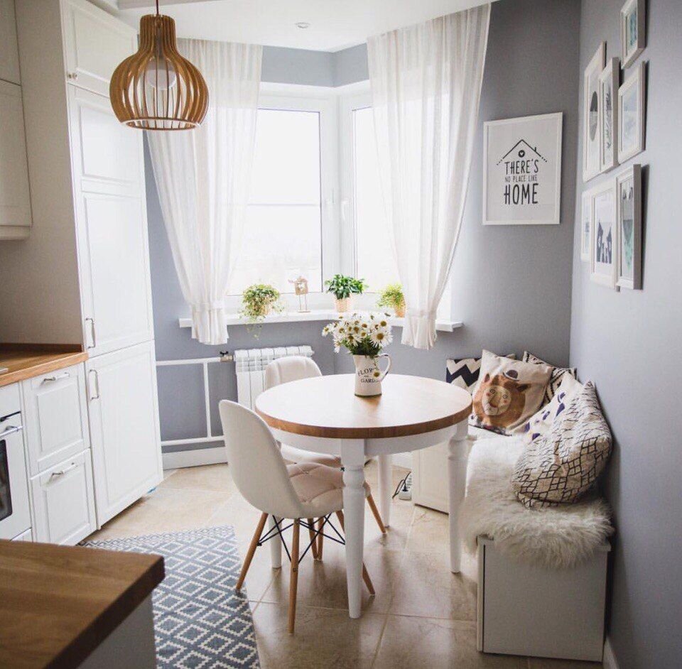 Также с помощью кухонного уголка можно обустроить пространство в небольших эркерах и нишах.