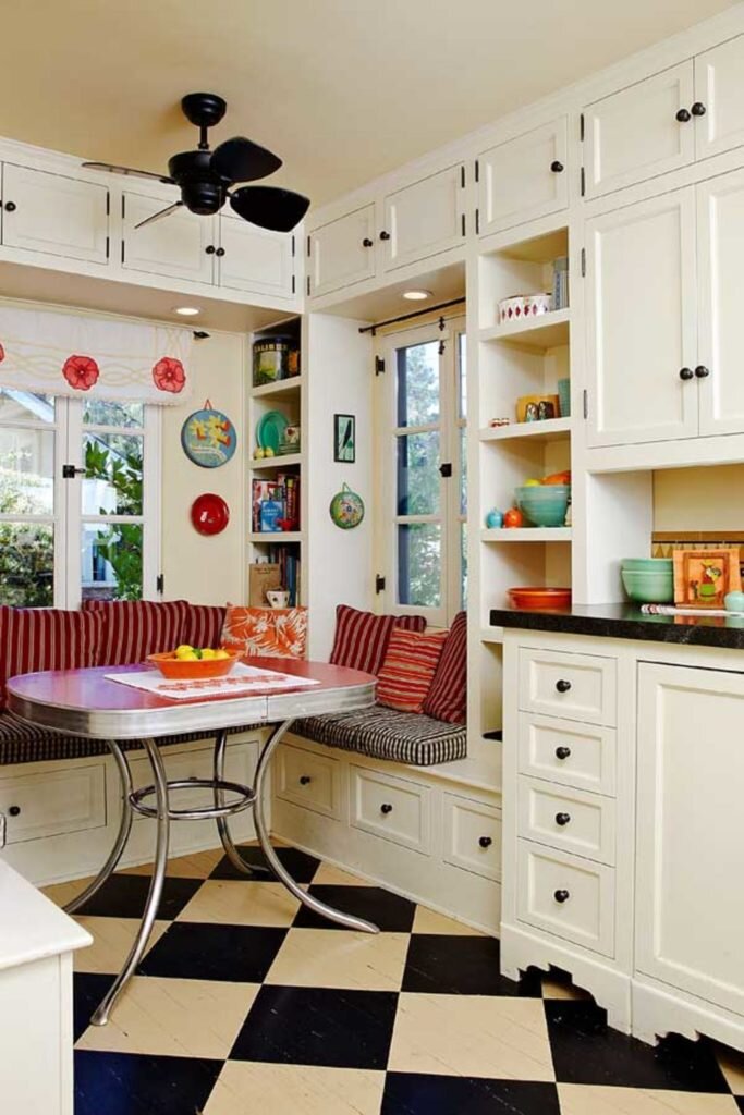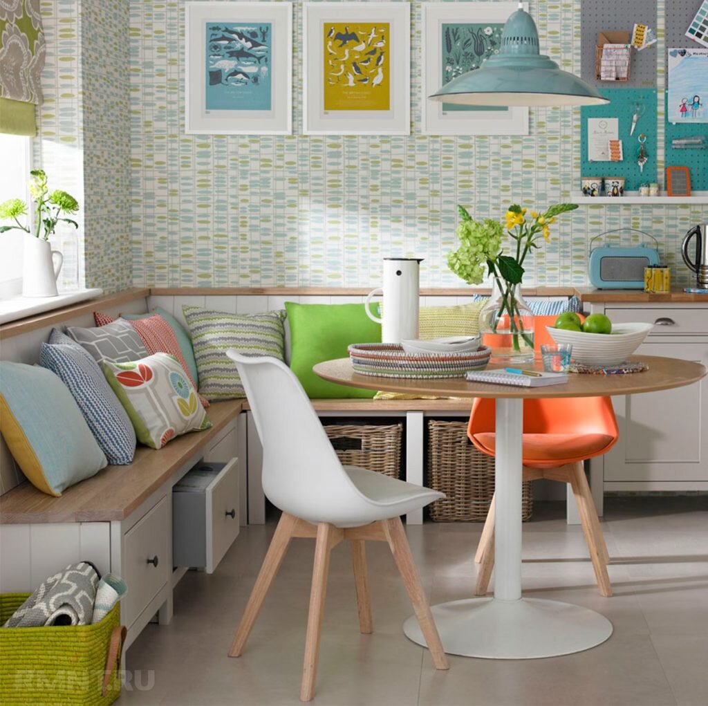 Первое, благодаря мягкому уголку вы создадите дополнительные места даже на кухне с маленькой площадью, что особенно актуально в больших семьях·