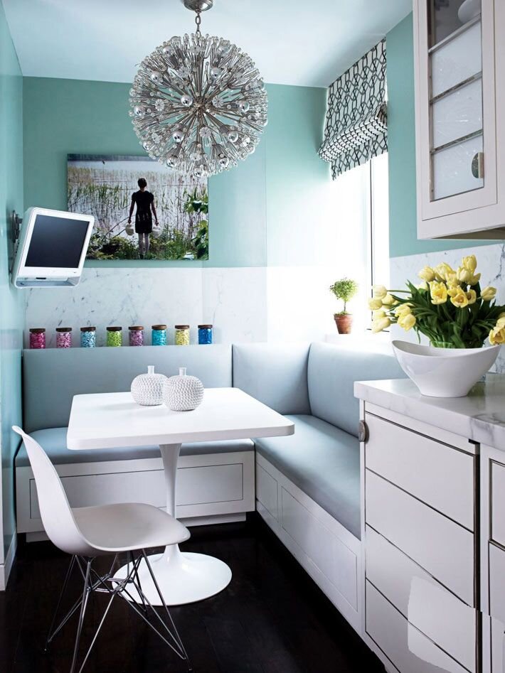 Уголок часто незаменим при желании создать отдельную зону столовой в кухне, гостиной или студии.