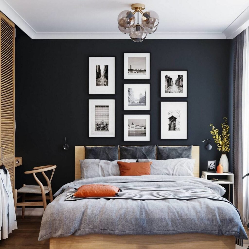 С другой стороны, черный — идеальный фон, основа для характерных светлых элементов.Этот эффект лучше всего достигается с помощью декора. Здесь дизайнеры разместили традиционную черно-белую графику.
