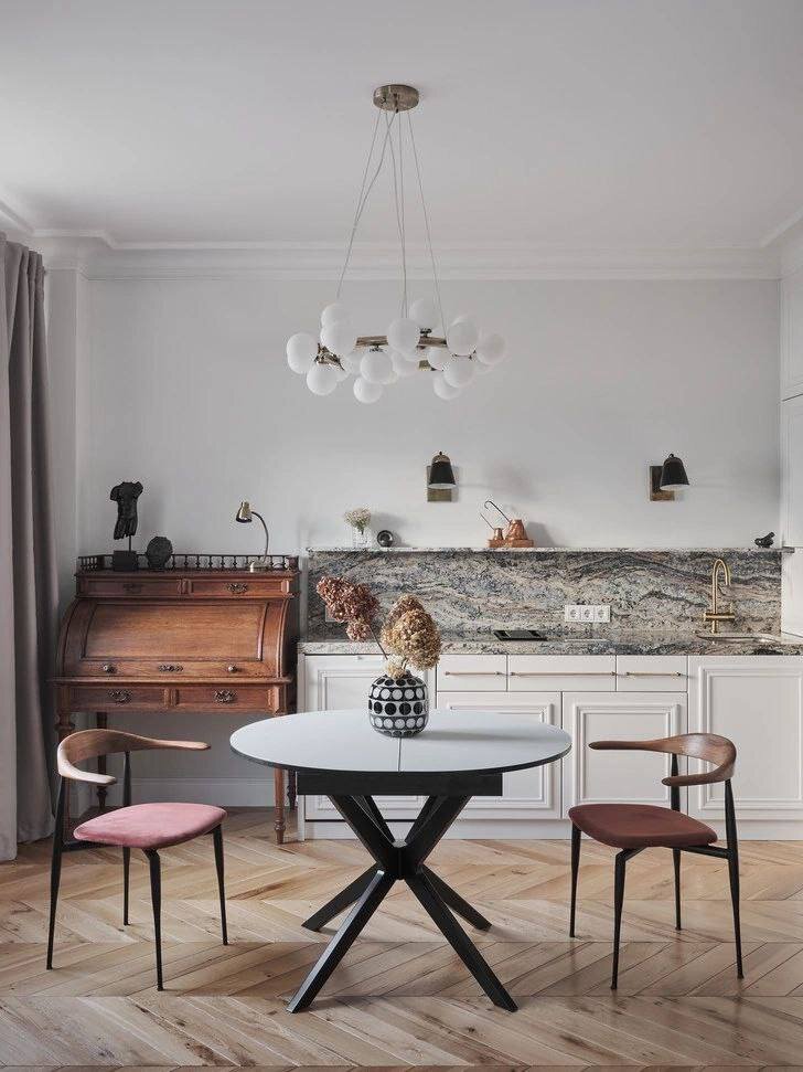 - Изысканные детали и золотые акценты. Элегантная кухня-гостиная в молочно-кремовых тонах