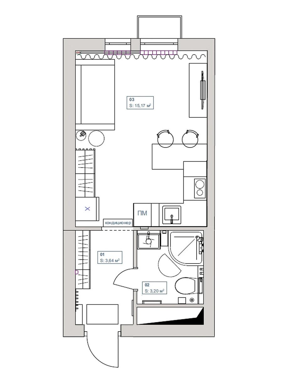 Площадь 22 кв.м.