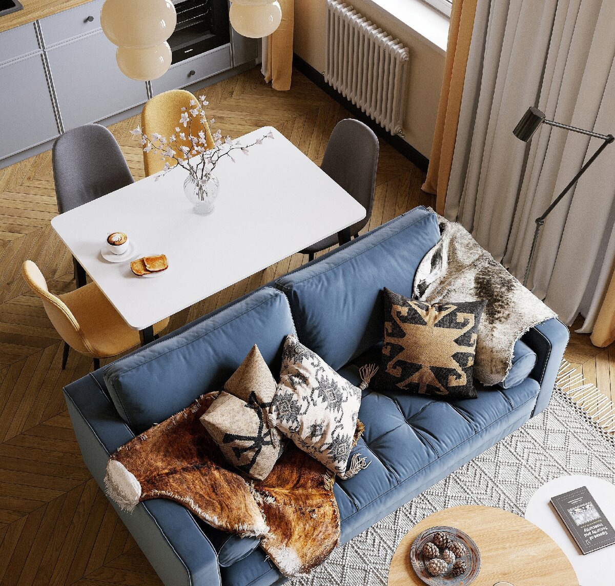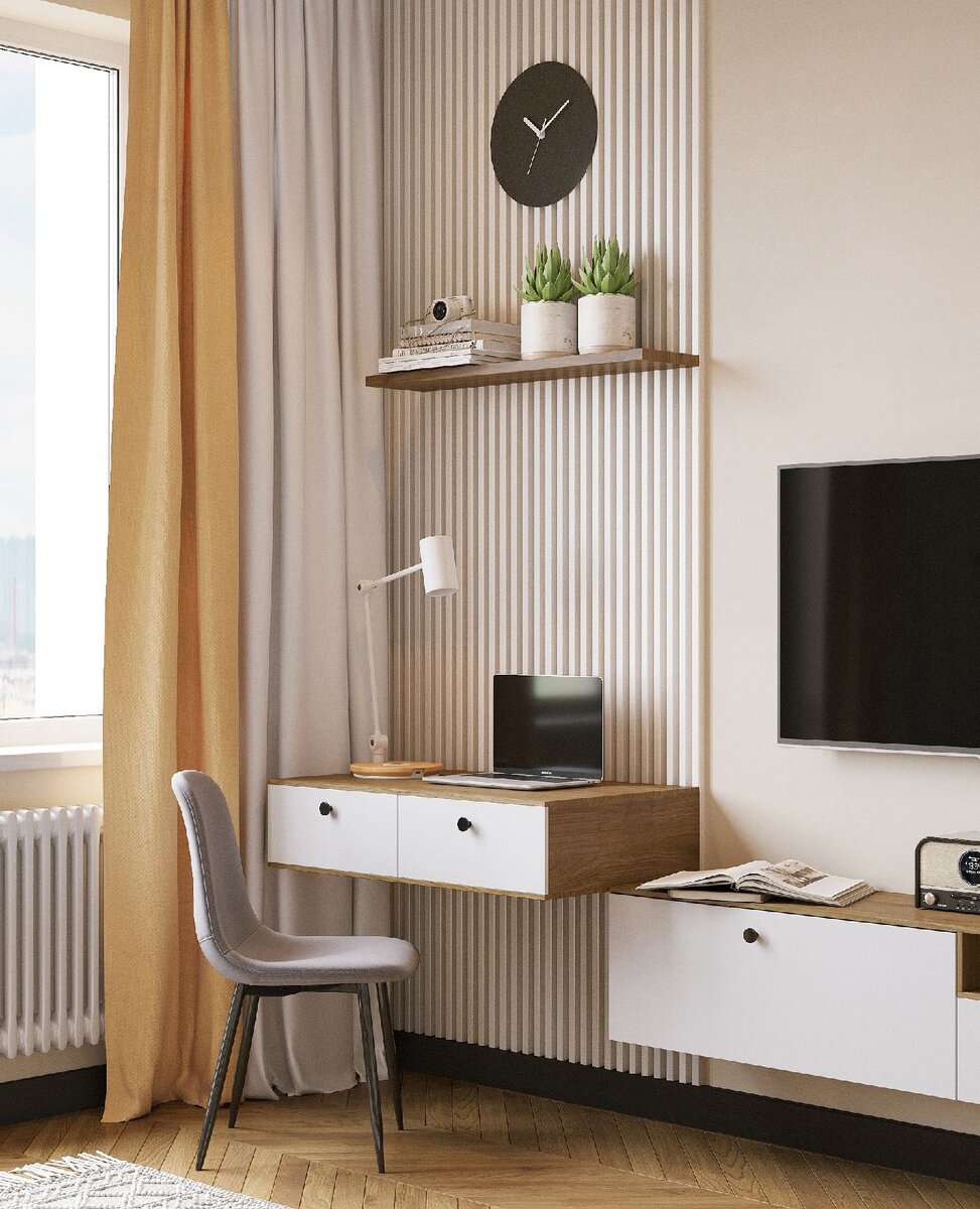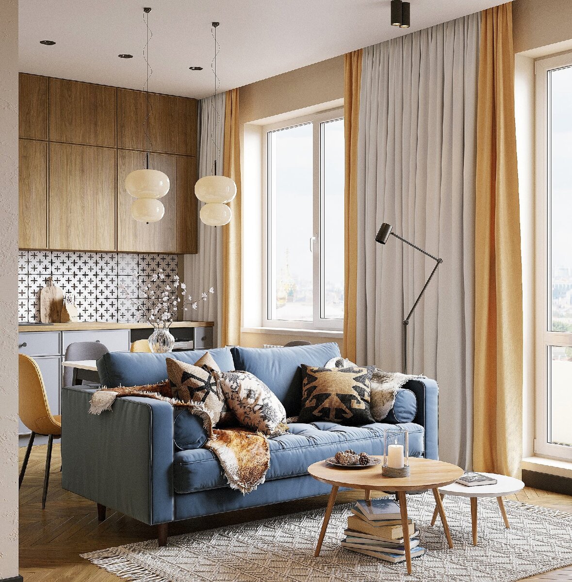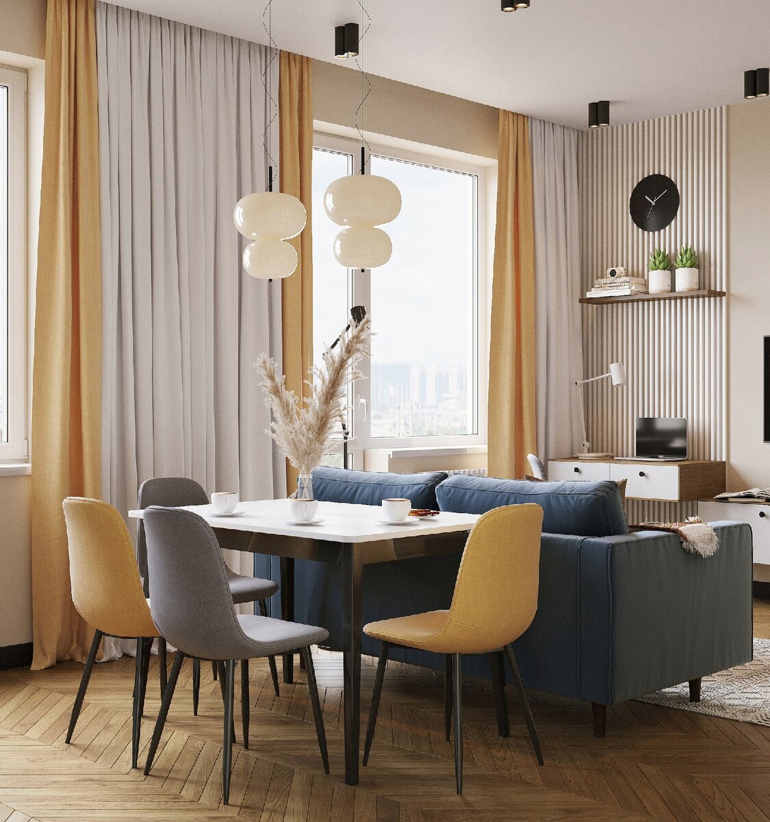 Приятный светлый интерьер в жизнерадостной цветовой гамме.