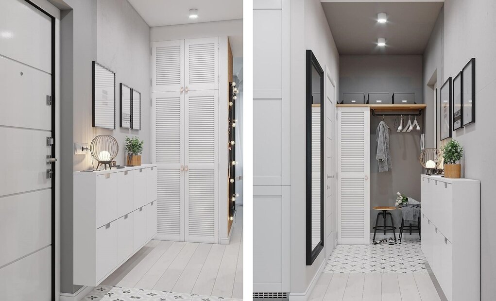 Белый скандинавский интерьер, «утепленный» деревом и бежевым цветом. Черные прикосновения призваны подчеркнуть и оттенить красоту белого цвета.