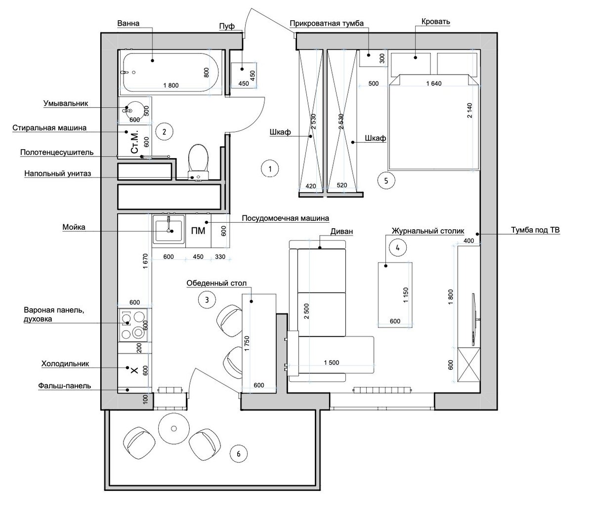 Отказ от сплошной стены между комнатой и кухней — самый простой вариант сделать квартиру просторнее и разместить еще одну функциональную зону.