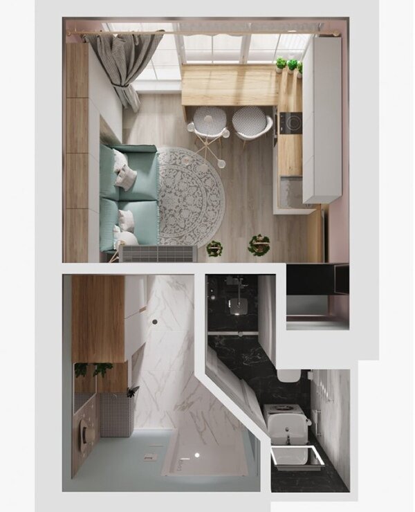 Микро-студия площадью всего16,5 кв.м. Жилая комната — 8,5 кв.м.