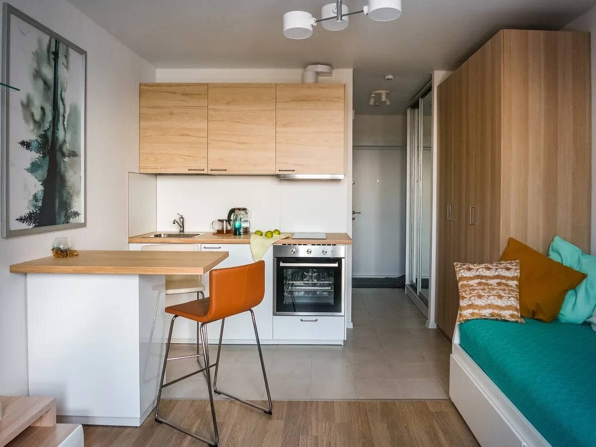 Большой плюс в том, что дуэт этих цветов не уменьшает эффект визуального расширения комнаты.