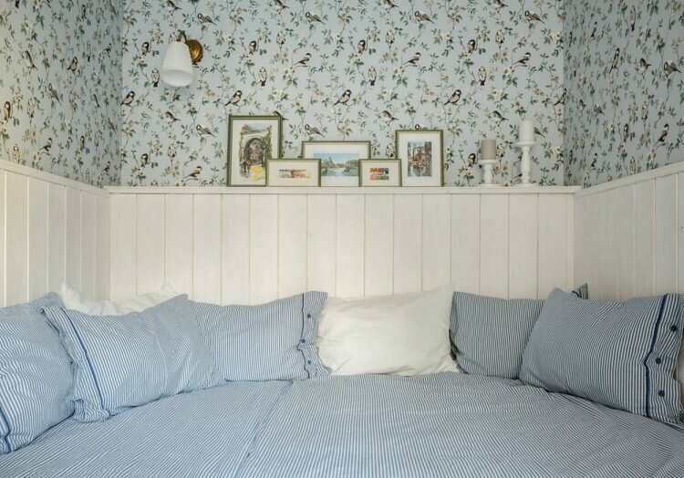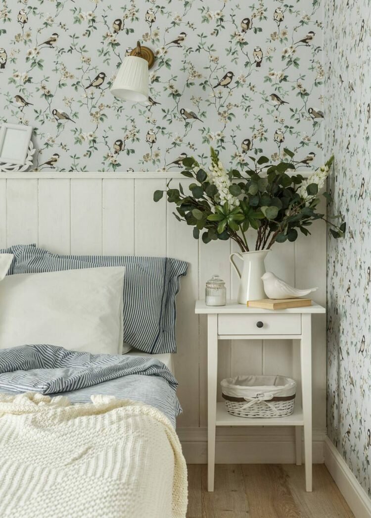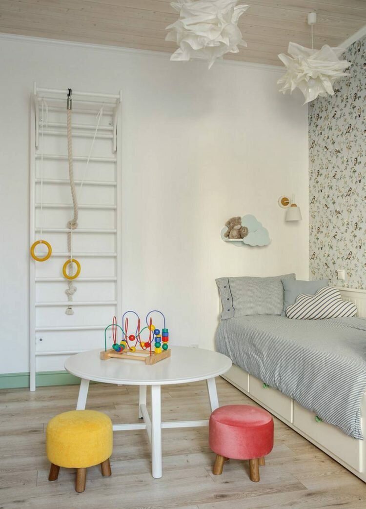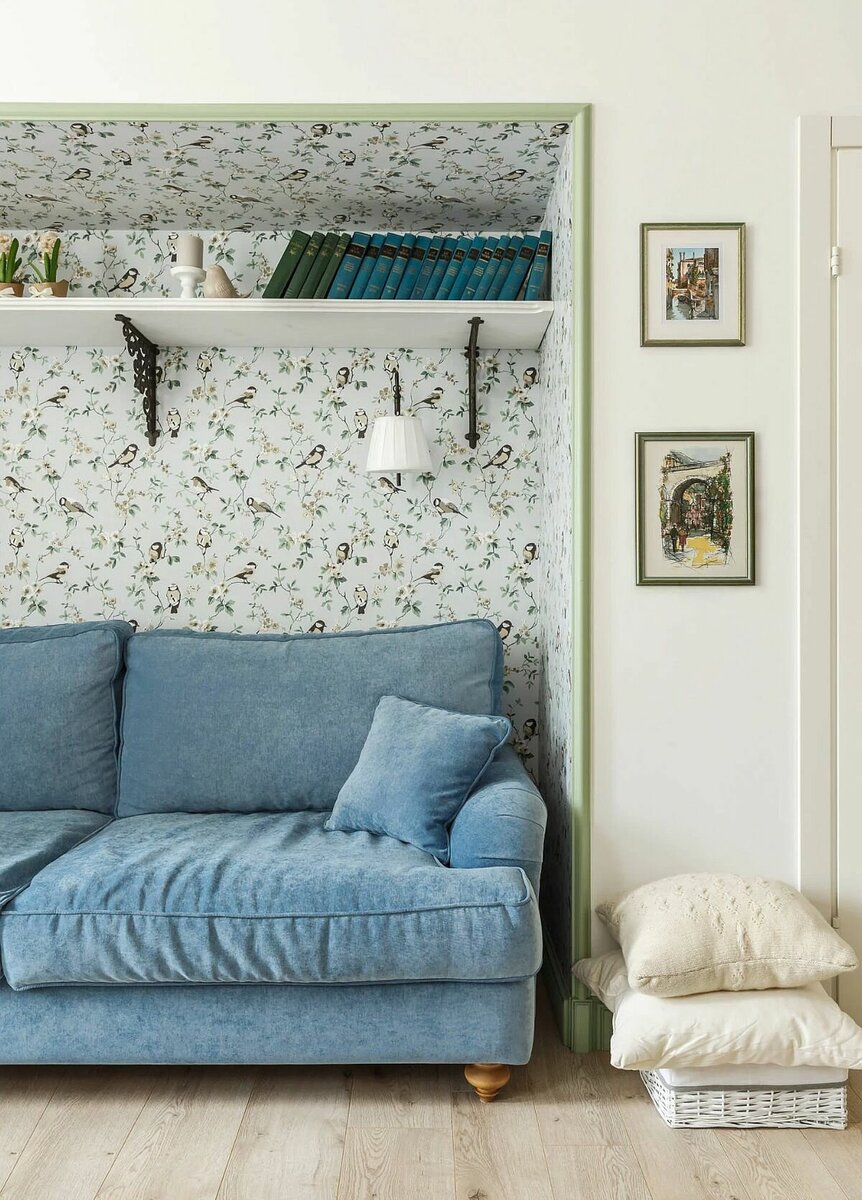 Стены были выкрашены в светлые цвета, а кое-где оклеены английскими цветочными обоями для создания более уютной атмосферы.