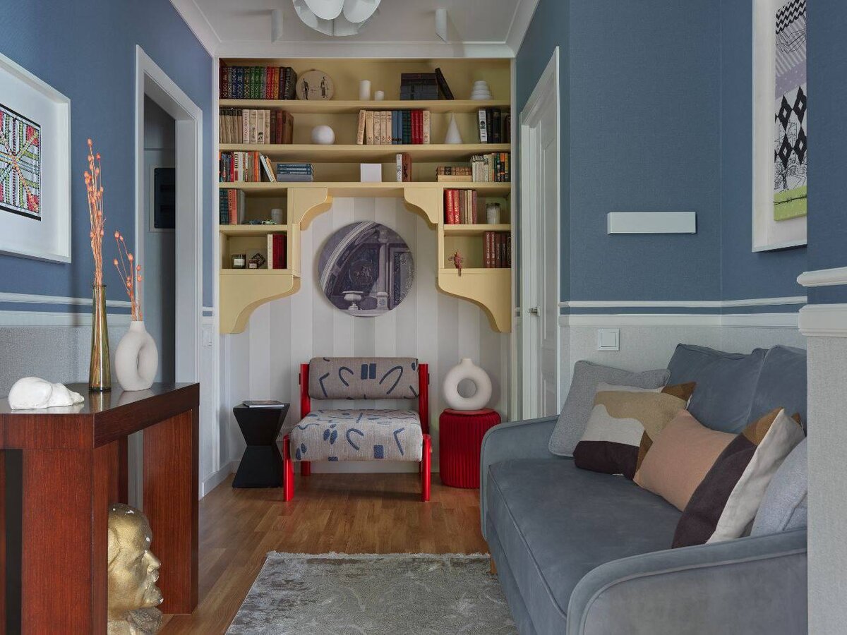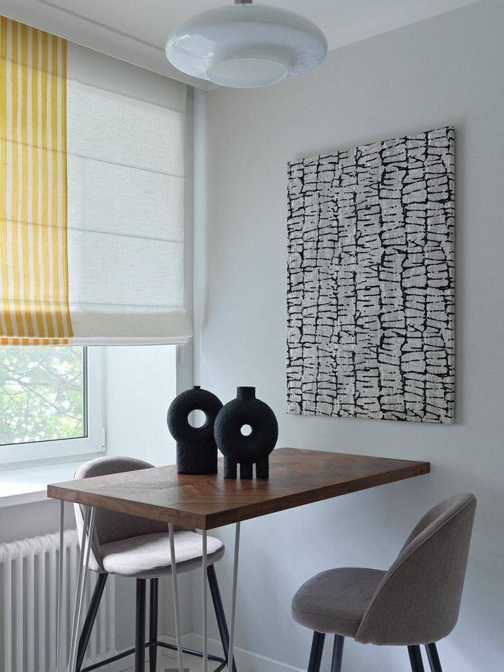 Эклектичный интерьер квартиры площадью 51 кв.м. для семьи с ребенком.