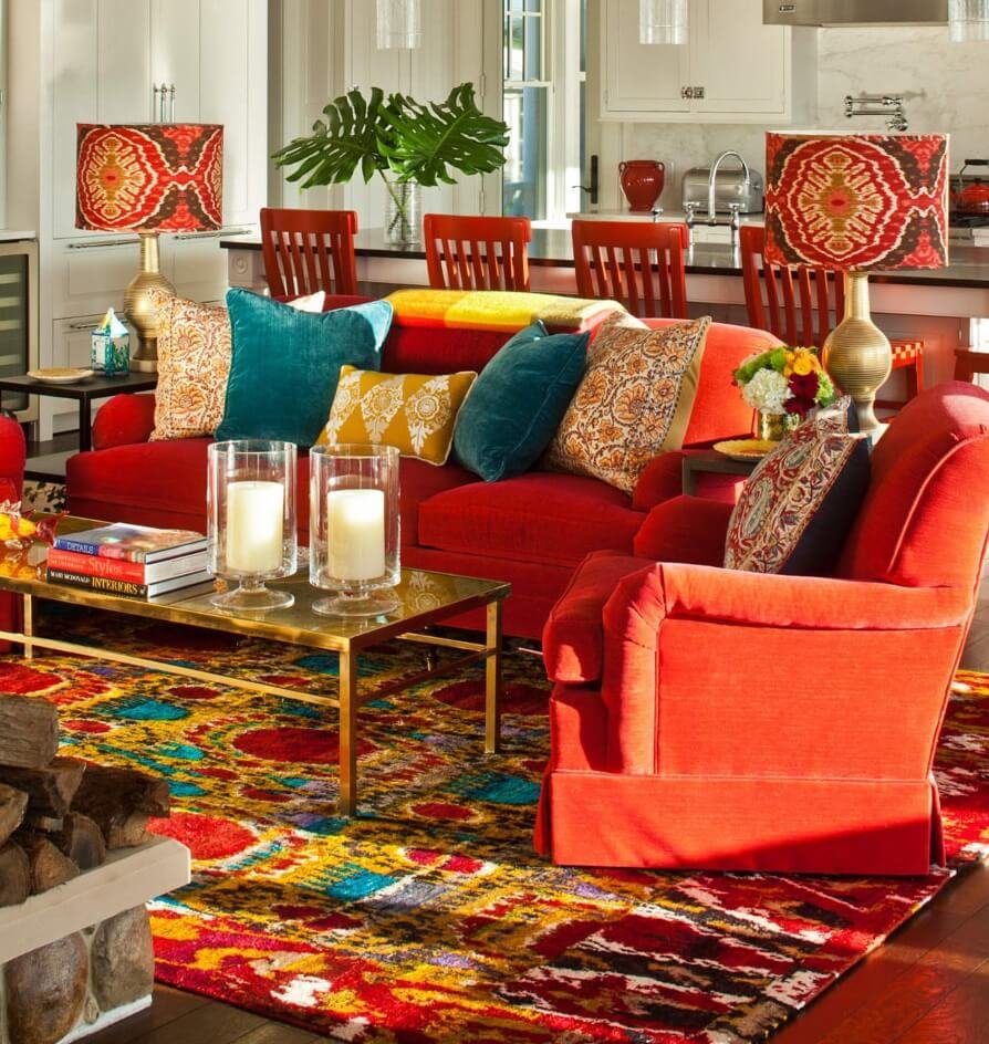 Эти яркие, сочные, теплые цвета оттеняют более прохладные оттенки синего и белого цвета, которыми обычно покрыты стены.