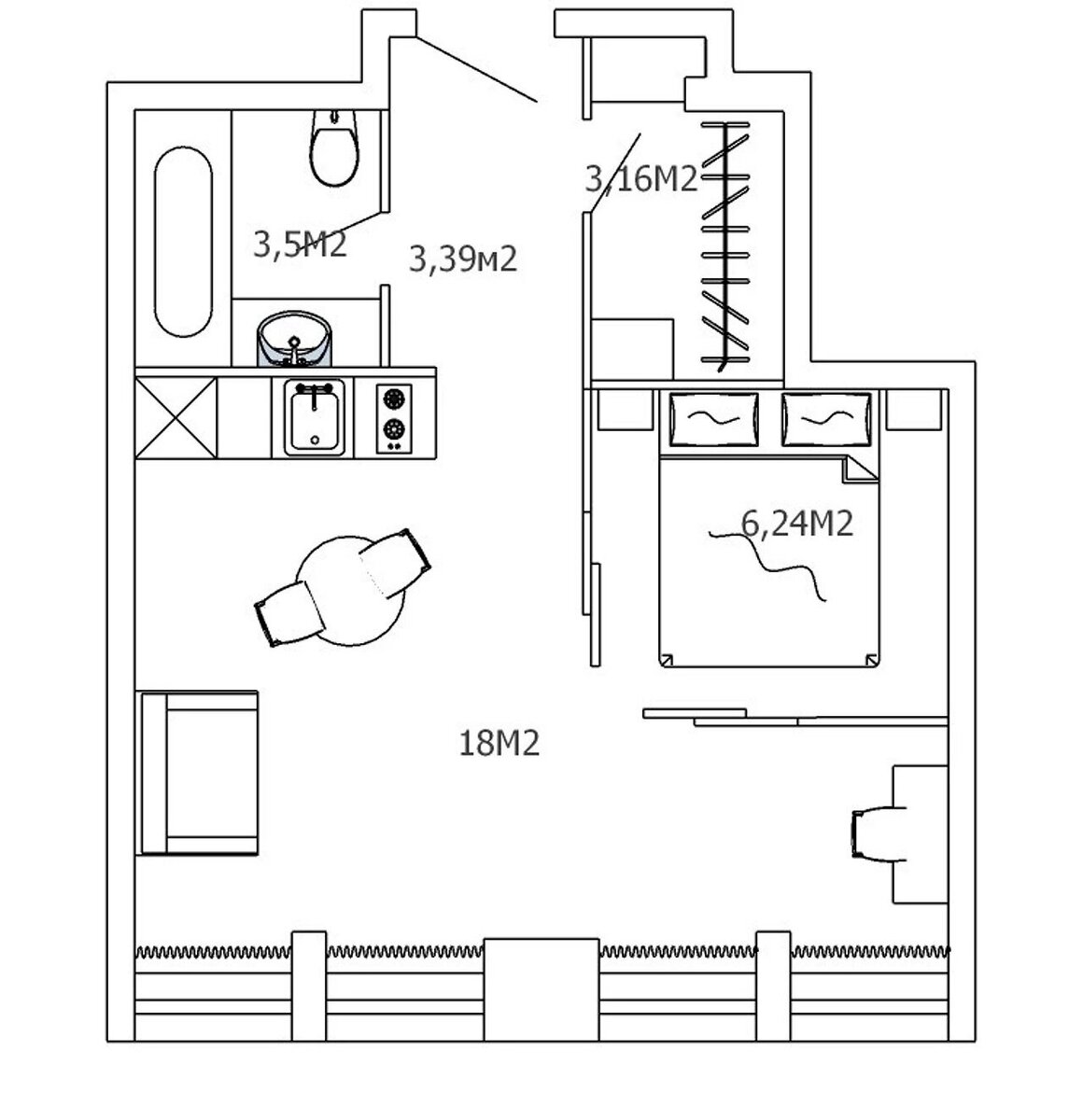 Квартиру площадью 34 кв.м. преобразили до неузнаваемости.